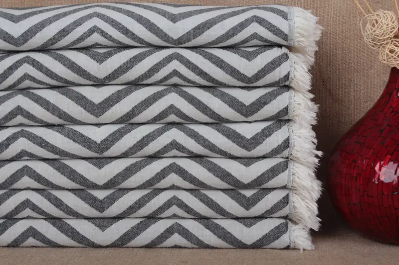 Beach Towel Turkish Cotton Zigzag Beige, 34x71 Inches