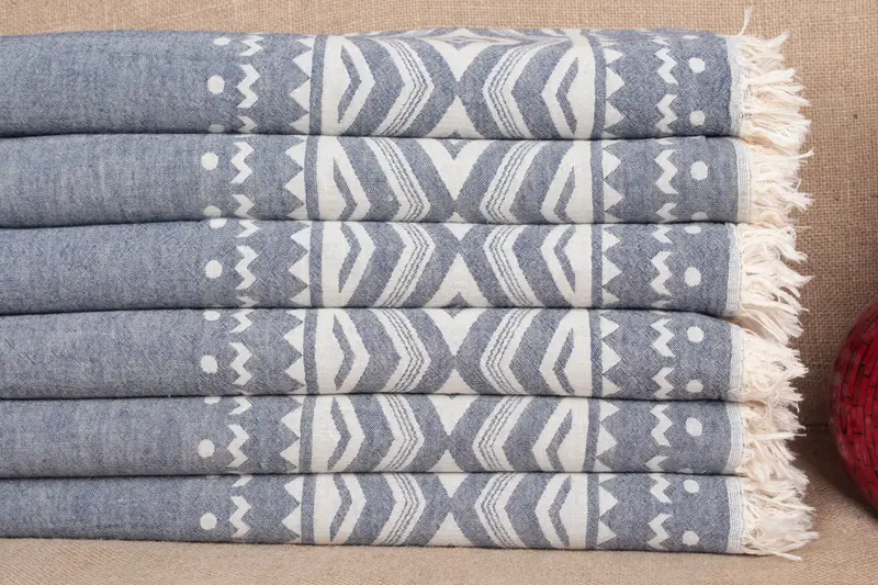 Turkish Hand Towel Aztec Patterned Navy, Organic Cotton, 24x40 Inches