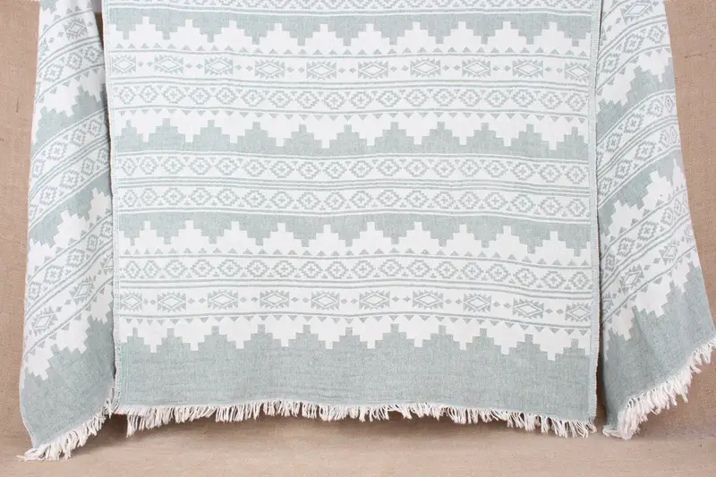 Turkish Beach Towel Dark Green Aztec Pattern, Organic Cotton, 36x71 Inches