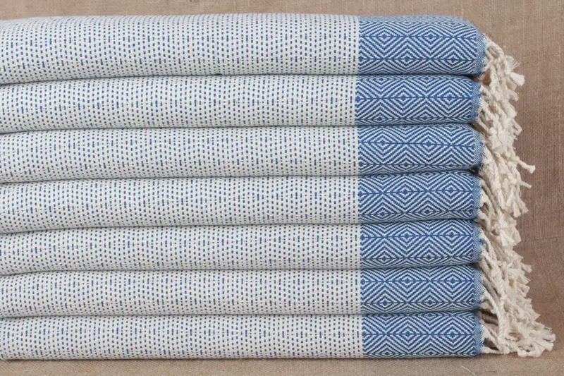 Turkish Hand Towel Organic Cotton Beige Diamond Pattern, 18x40 Inches