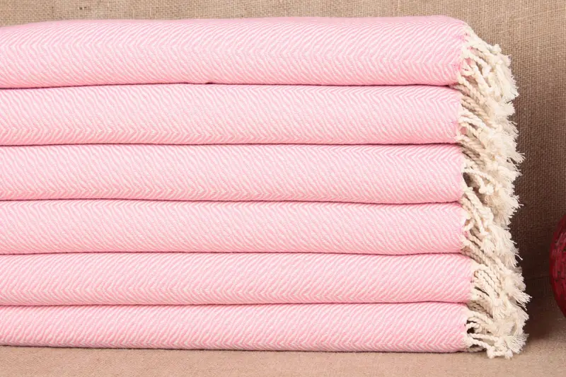 Hand Towel Organic Cotton Pink Chevron, Beige, 20x40 Inches