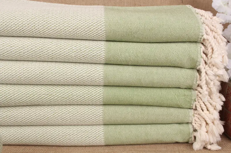 Geometric Towel Bath Towel Khaki Green and Beige, 36x71 Inches