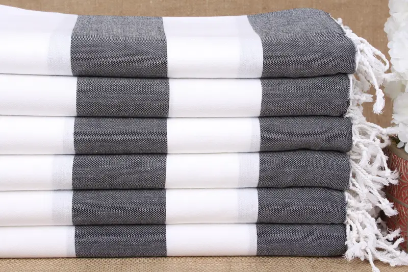 Monogram Beach Towel Turkish Cotton Black-White Stripes, 40x71 Inches