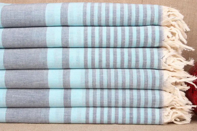 Wholesale Organic Turquoise-Navy Blue Striped Towel, 40x71 Inches