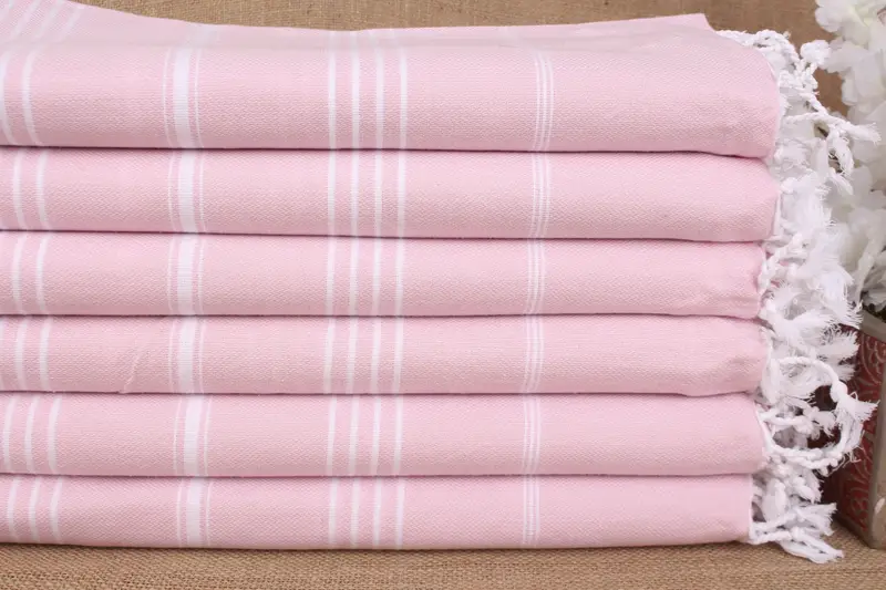 Light Powder Pink Cotton Towel with Beige Secondary Color, 40x71 Inches