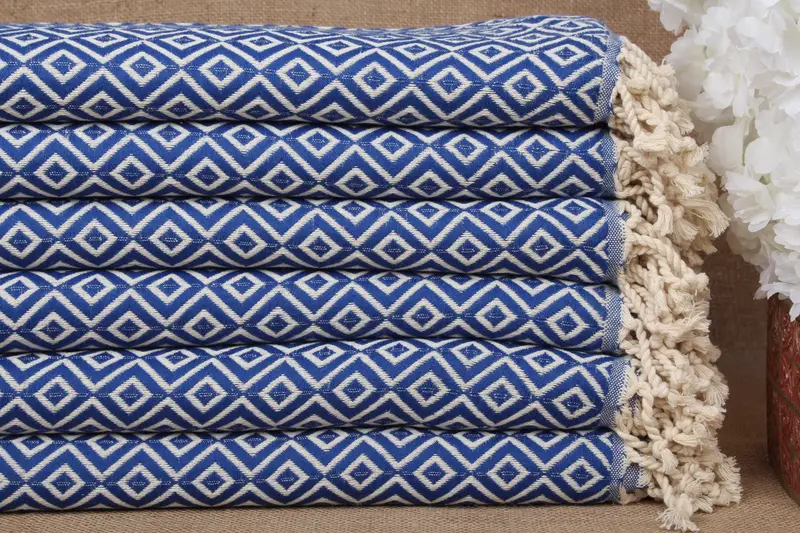 Custom Beach Towel Turkish Cotton Sax Blue Diamond, 40x71 Inches
