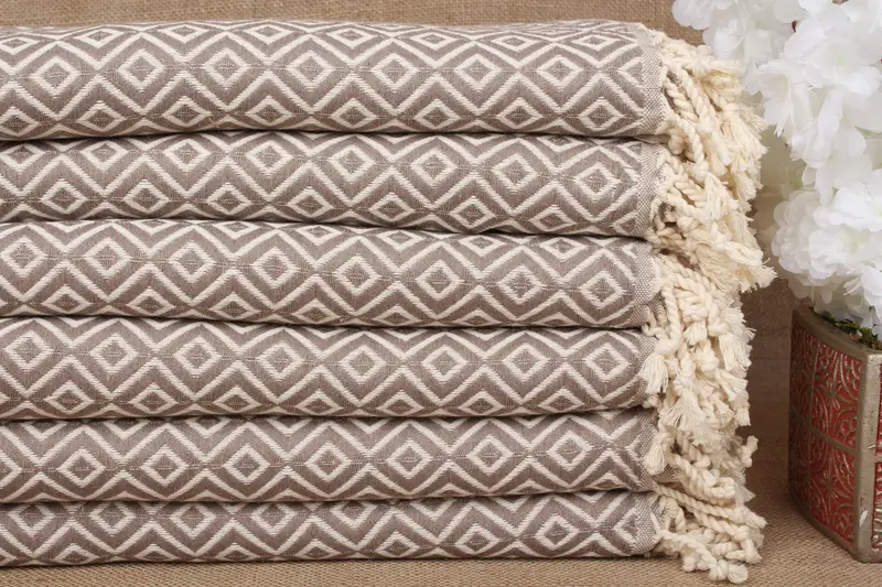 Personalized Diamond Towel Brown Organic Cotton, Beige, 40x71 Inches
