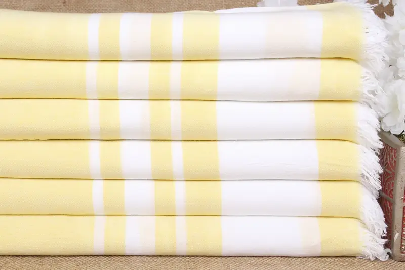 Personalized Yellow Striped Bath Towel, Organic Cotton, Beige, 36x67 Inches