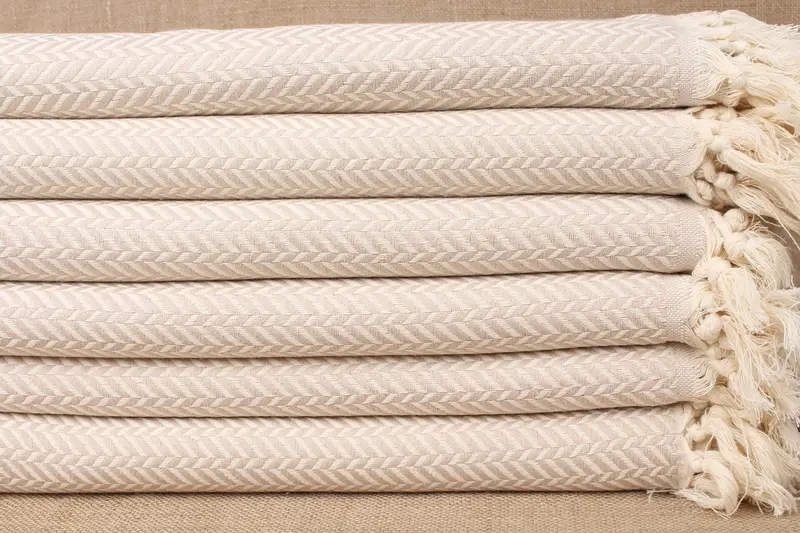 Turkish Beach Towel Embroidered Light Beige Chevron, 40x71 Inches