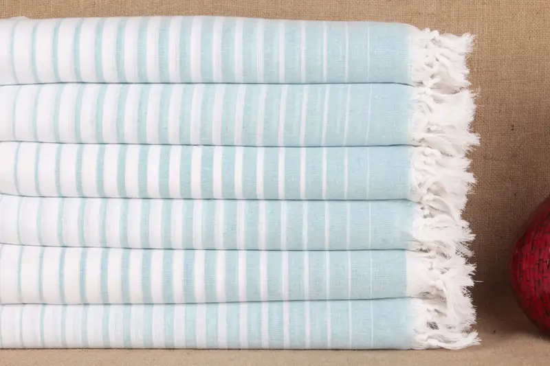 Wholesale Turkish Bath Towel White-Turquoise Striped, 40x69 Inches