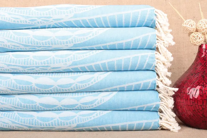 Turkish Beach Towel Organic Cotton Turquoise Stripes, 40x71 Inches