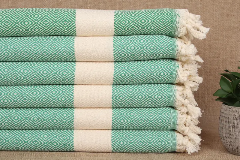 Handmade Organic Cotton Benetton Green Diamond Towel, 20x36 Inches