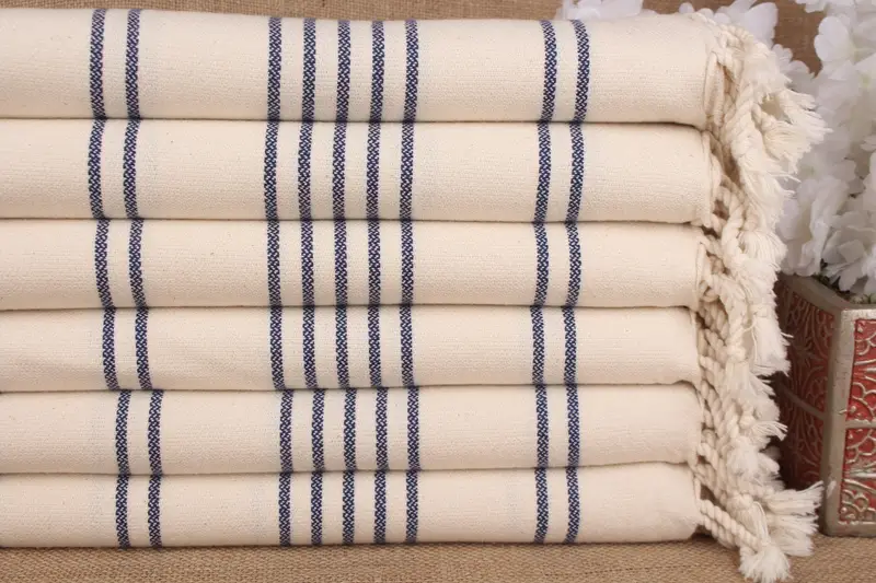 Personalized Navy Striped Organic Cotton Towel, 40x71 Inches