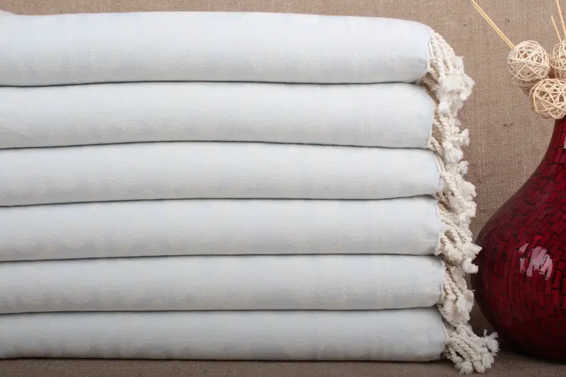 Comprising pure organic cotton, the beach towel is characterized by its high absorbency and rapid drying. Weighing approximately 300 grams, it measures 40x71 inches or 100x180 centimeters, allowing for a 2-5cm margin due to weaving processes. Tolerances are inherent in handcrafted Turkish towels.
