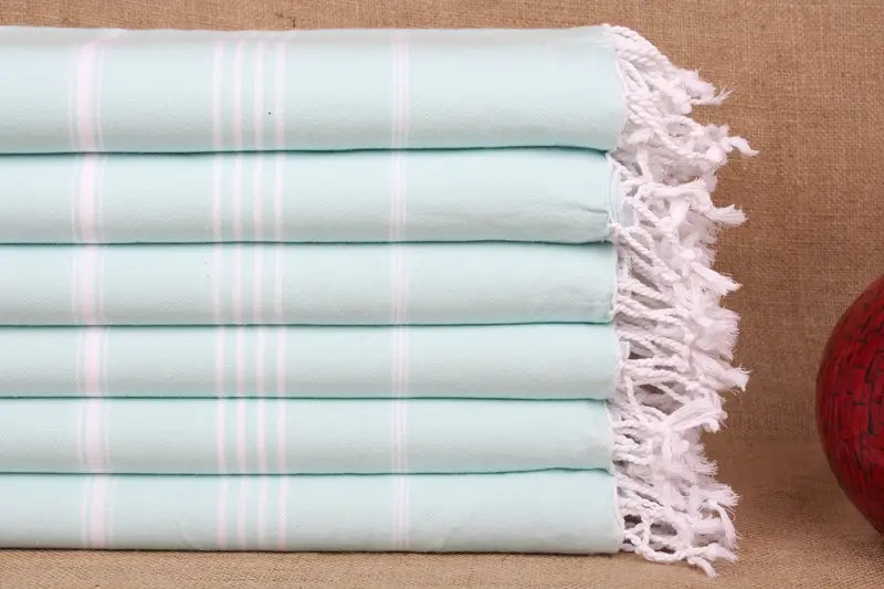 These beach towels are composed of pure organic cotton, ensuring high absorbency and quick drying. Resulting in a lightweight and multi-purpose towel, their dimensions are 40x71 inches or 100x180 centimeters. Characterized by a tolerance of ± 2 inches or 5 centimeters, these towels weigh approximately 280 grams.