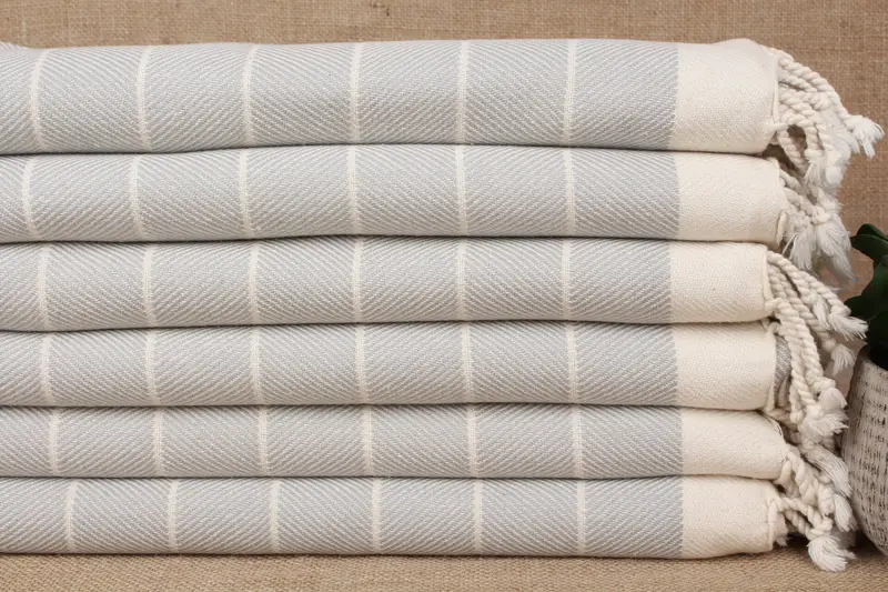 Herringbone Beach Towel Personalized Turkish Cotton, Light Gray, 40x71 Inches