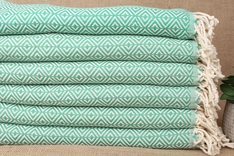 Turkish Beach Towel Personalized Green Diamond, 40x67 Inches