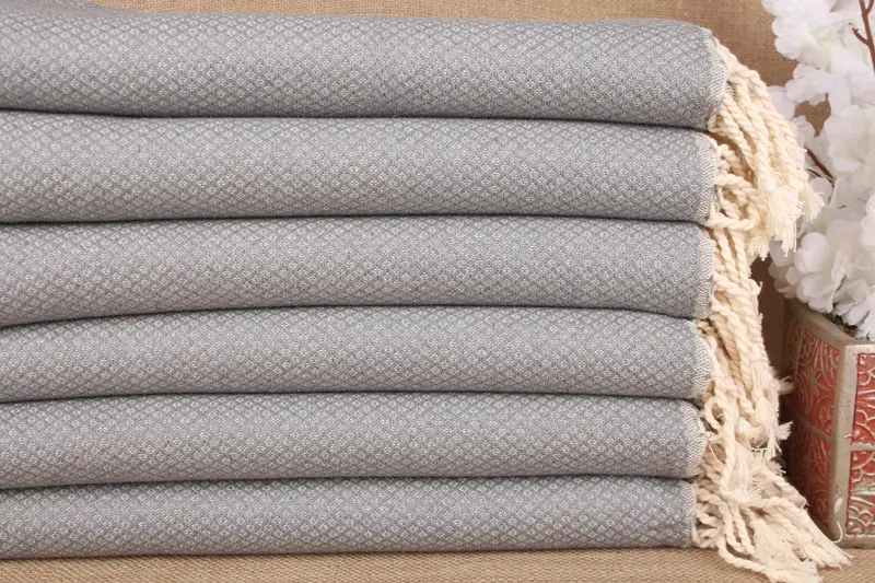 Wedding Gift Dark Gray Cotton Towel, Geometric Pattern, 38x63 Inches