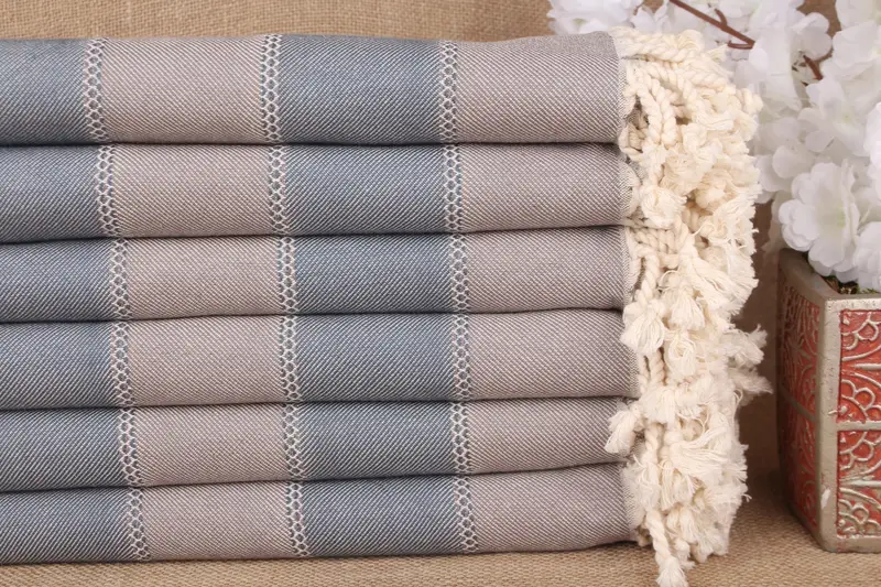 Brown-Petrol Cotton Towel Beach Towel Handmade, 36x65 Inches