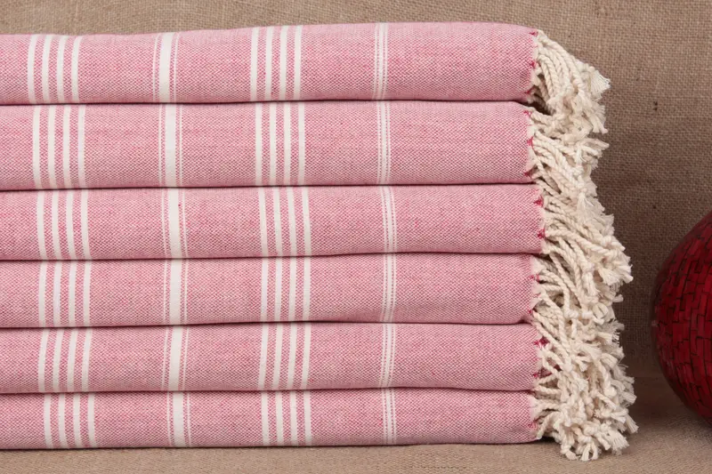 Organic Cotton Fuchsia Striped Towel, Wedding Gift, 40x71 Inches