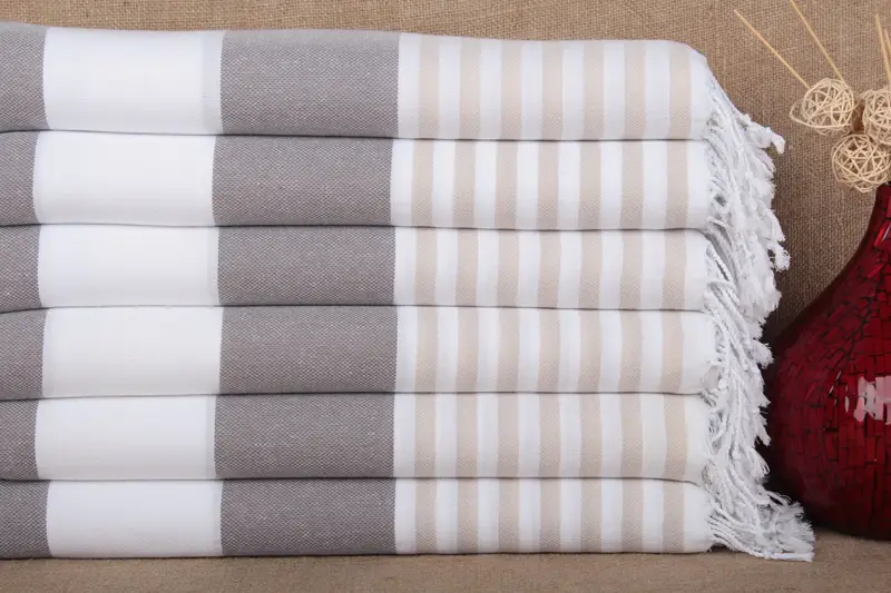Wedding Gift Organic Cotton Striped Peshtemal, Beige, 40x71 Inches
