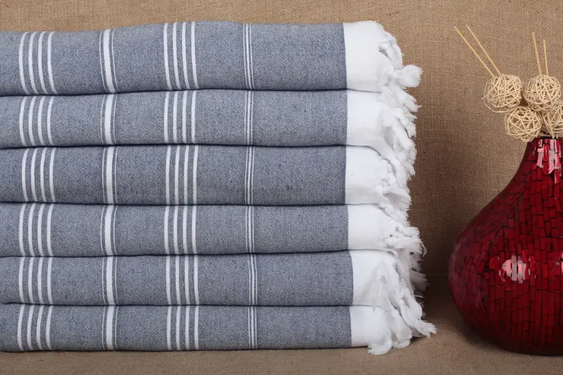 Wedding Gift Towels Striped Peshtemal Beige Terry, 36x67 Inches