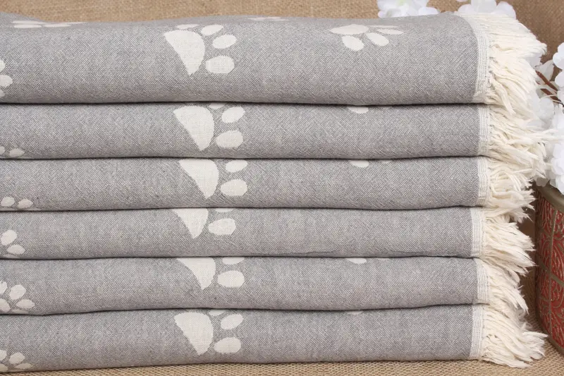 Wedding Favor Dark Gray Boho Beach Towel with Paw Design, 36x71 Inches