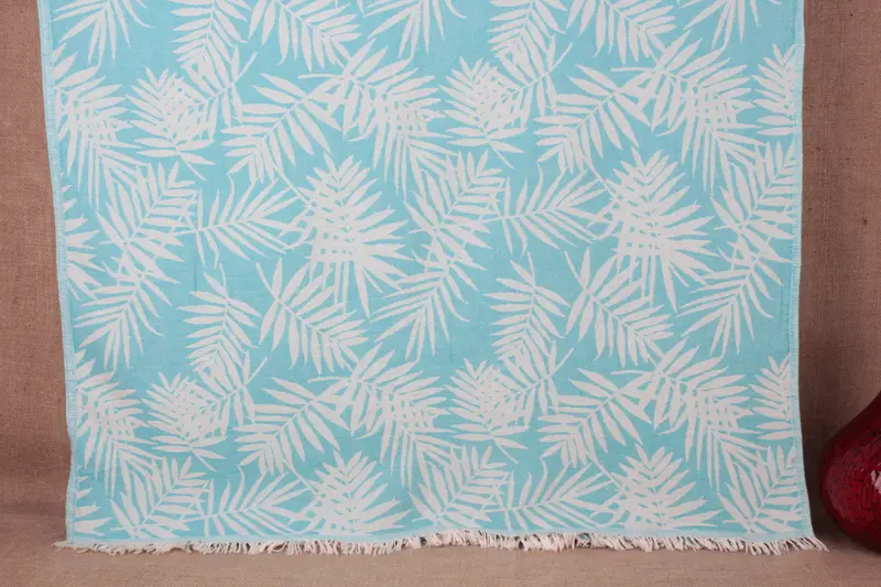 Wedding Gift Floral Patterned Turquoise Peshtemal, 40x63 Inches