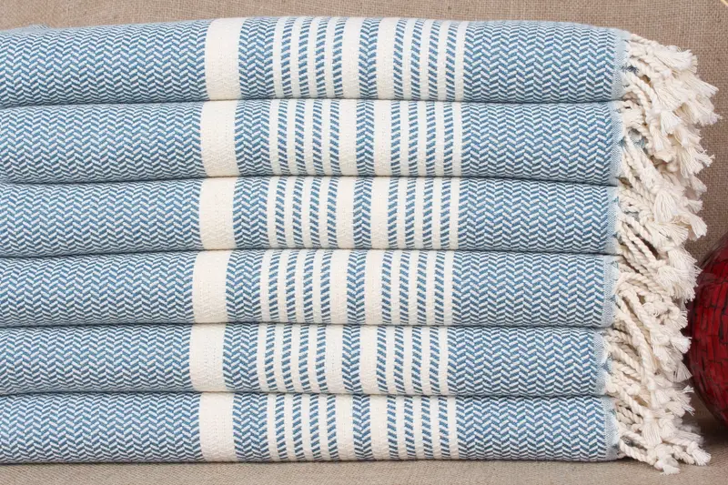 Wedding Gift Towel Petrol Blue Striped Peshtemal, 40x71 Inches