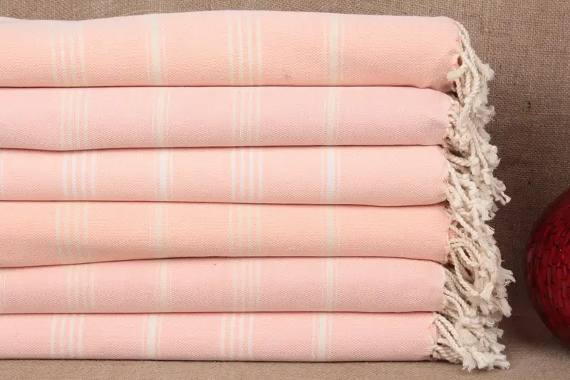 Wedding Gift Organic Coral Striped Towel, Beige, 40x71 Inches