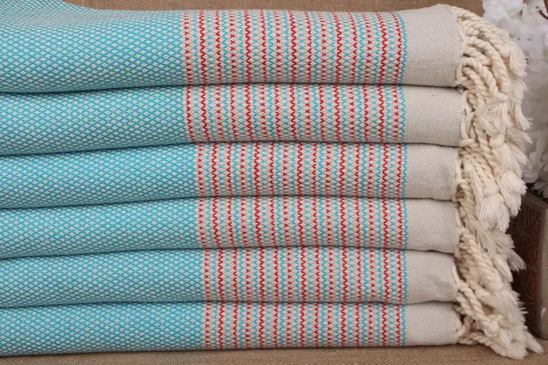 Turquoise-Red Cotton Towel Striped, 40x63 Inches, Wedding Gift