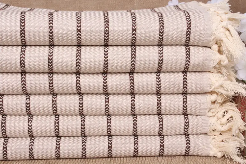 Custom Beach Towel Embroidered Light Beige-Brown Stripes, 40x71 Inches