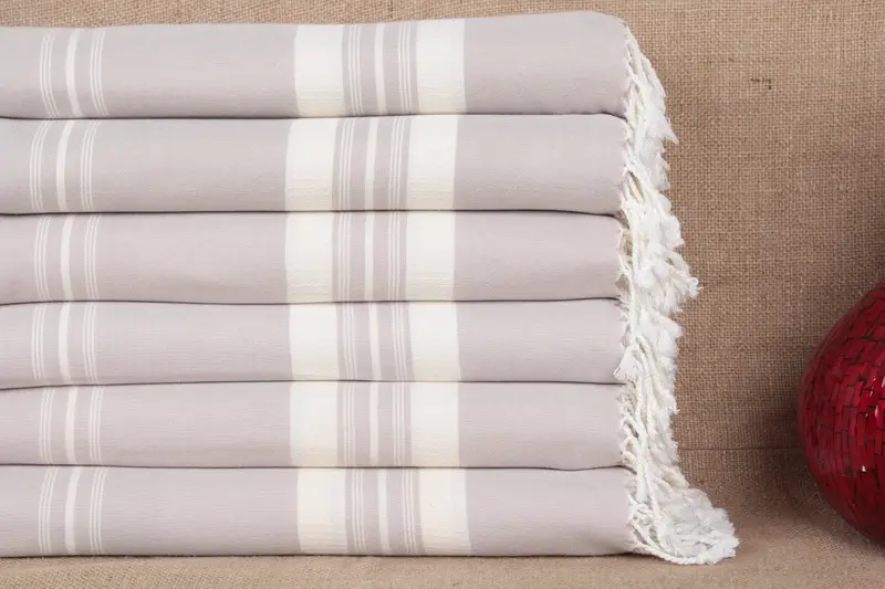 Organic Beach Towel Turkish Cotton Striped Beige, 38x60 Inches