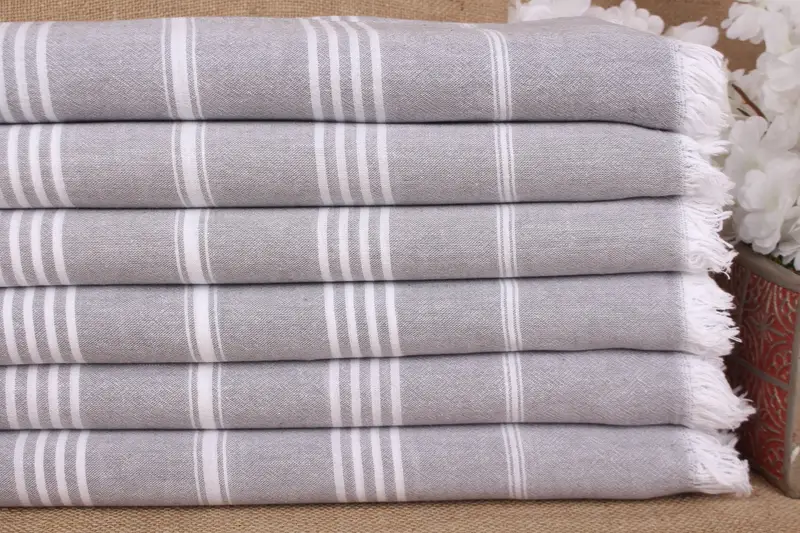 Striped Gray Cotton Towel Wedding Gift, 36x67 Inches