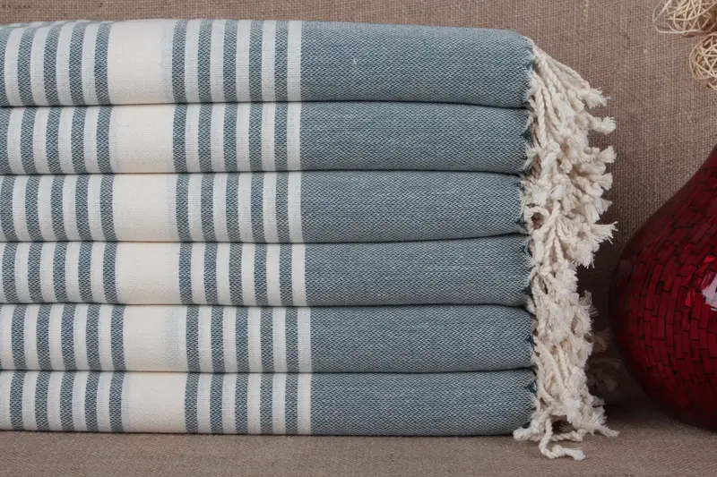 Turkish Bath Towel Striped Petrol Blue, Organic Cotton, 40x67 Inches