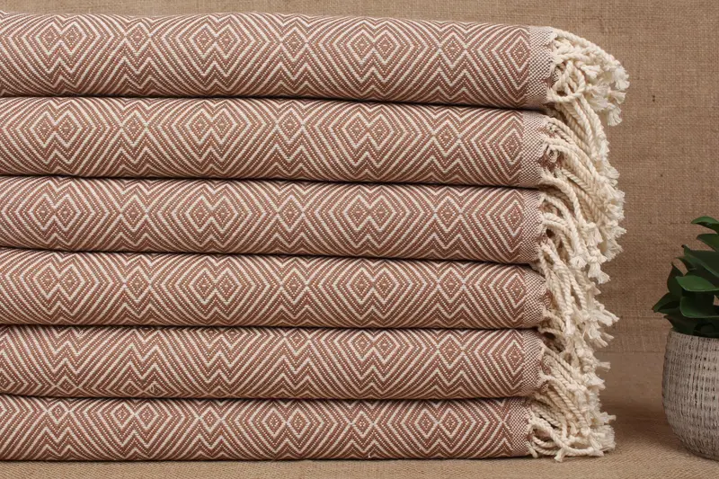 Personalized Beach Towel Brown Diamond, Organic Cotton, 40x75 Inches