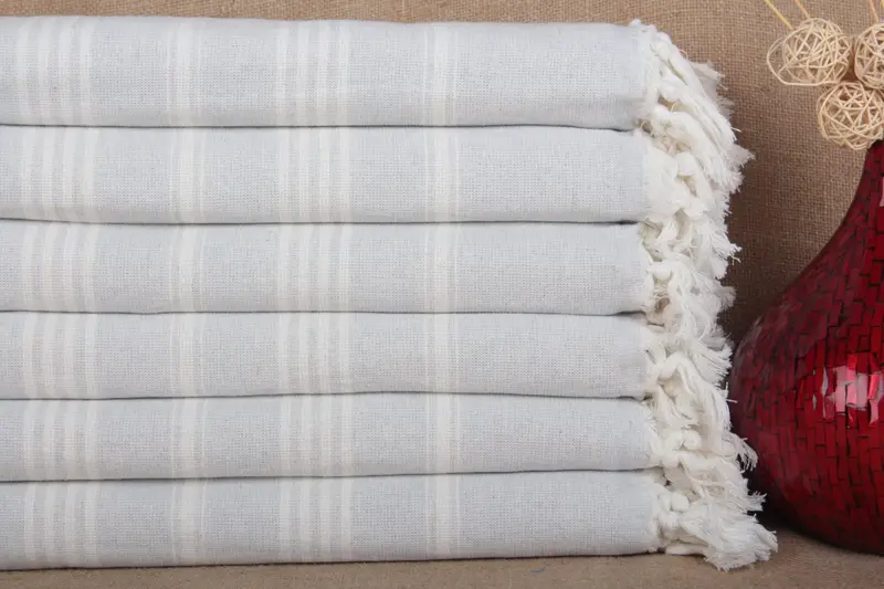 Turkish Beach Towel Organic Cotton Striped Beige, 40x71 Inches