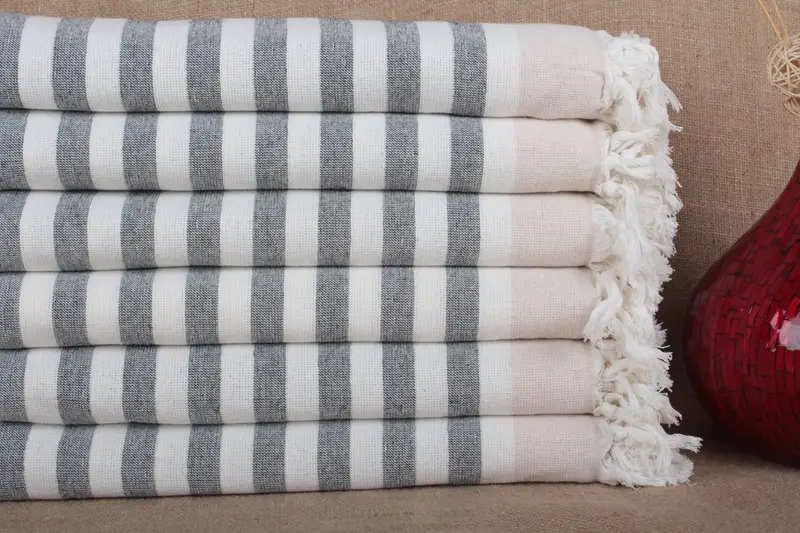 Turkish Bath Towel Organic Cotton Beige Stripes, 40x67 Inches
