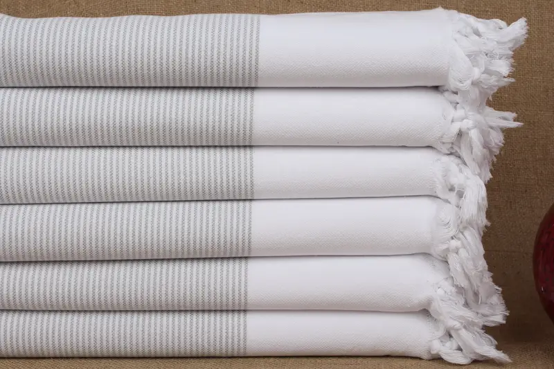Beach Towel Monogram Turkish Cotton Light Gray Stripes, 40x71 Inches