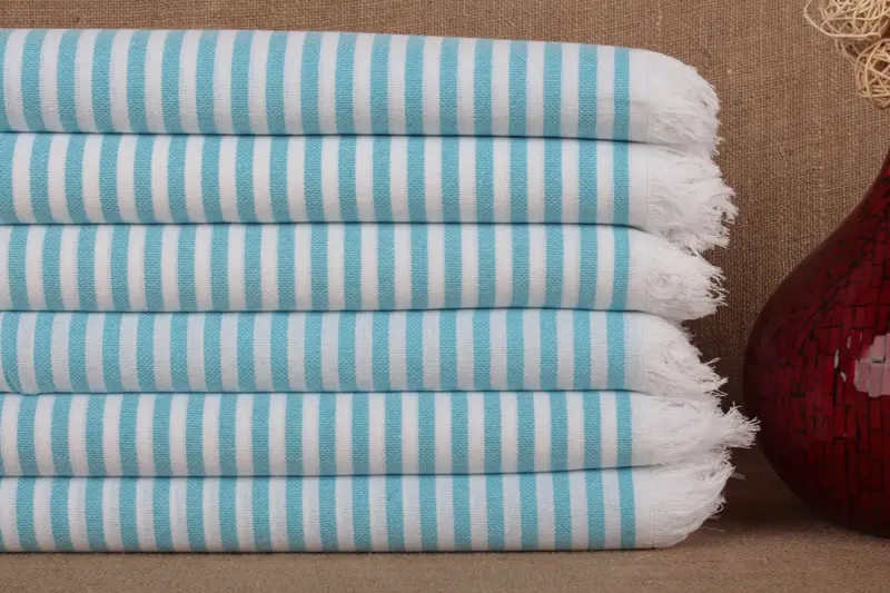 Wedding Gift Towels, Light Gray Turquoise Stripe Peshtemal, 40x71 Inches