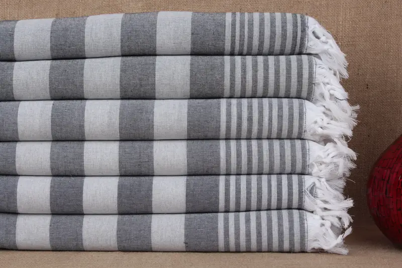 Wedding Gift Towel Turkish Bath Light Gray Striped, 36x67 Inches