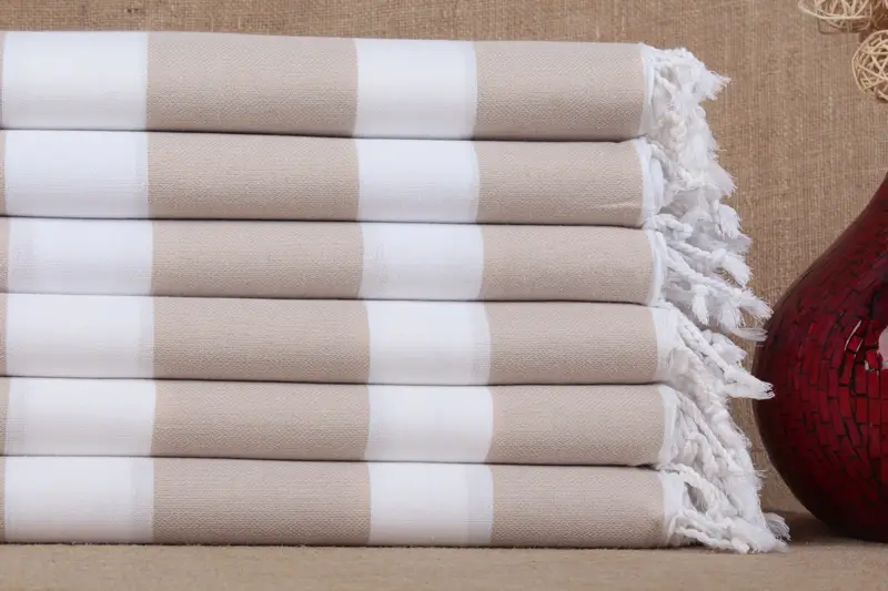 Personalized Striped Beige Towel Turkish Cotton, 40x71 Inches