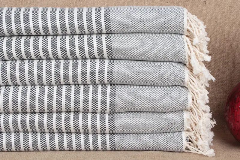 Wedding Gift Towel Turkish Cotton Striped Black Beige, 40x75 Inches