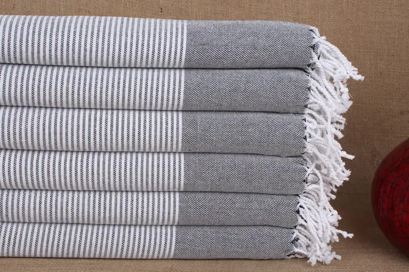 Beach Towel Turkish Cotton Embroidered Black Stripes, 40x71 Inches