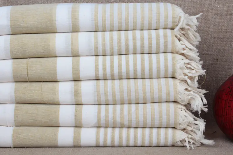 Organic Cotton Towel Mustard Striped 40x71 Inches