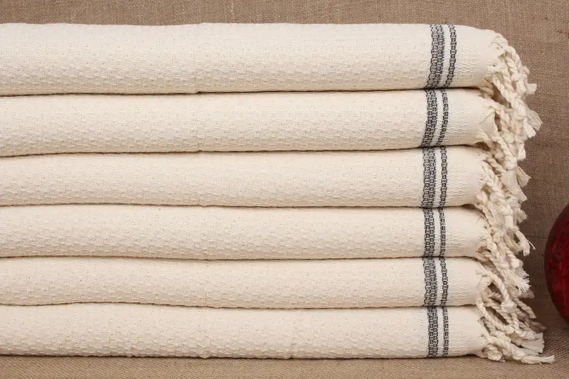 Wedding Dish Towel Embroidered Black Striped 18x38 Inches