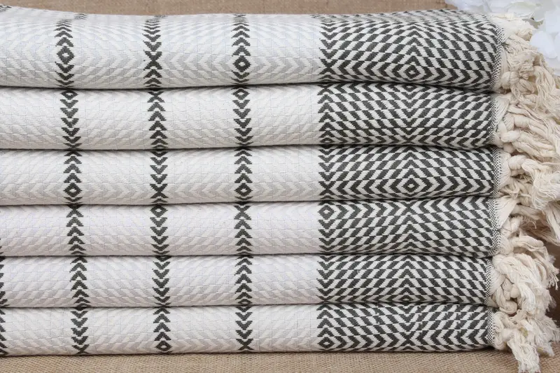 Personalized Gift Diamond Striped Turkish Towel Dark Green-Gray, 40x79 Inches