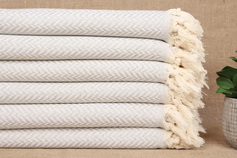 Turkish Towels Beach Handwoven Organic Cotton Light Gray, 40x71 Inches