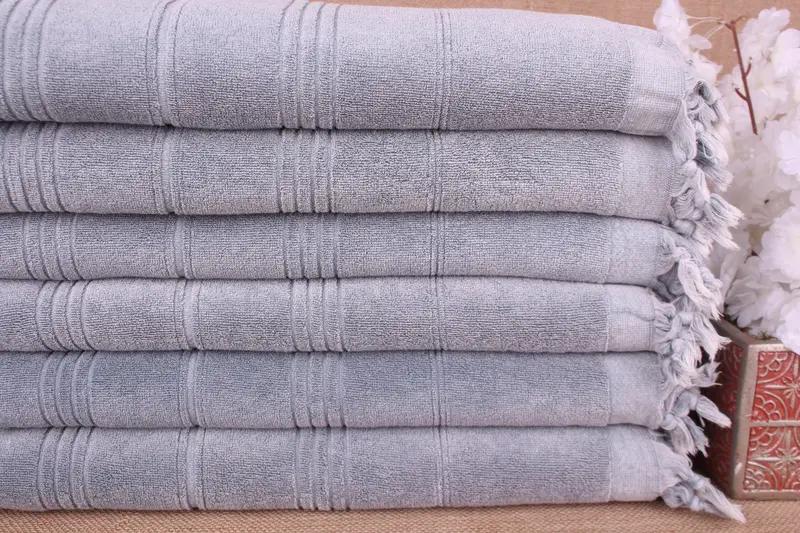 Striped Terry Towel Wedding Gift, Stonewashed Gray Cotton, 36x71 Inches