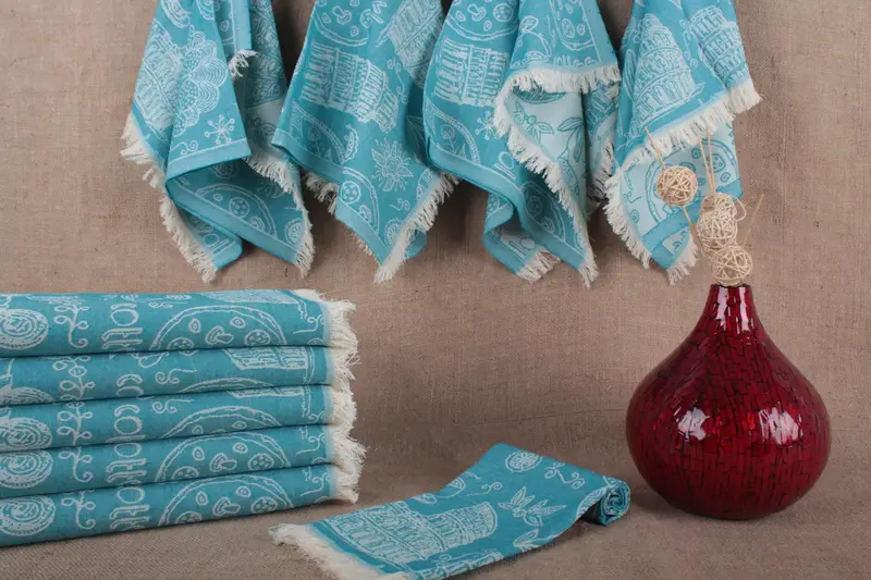 Turkish Tea Towels Italian Symbols Patterned, Organic Cotton, Beige, 20x28 Inches